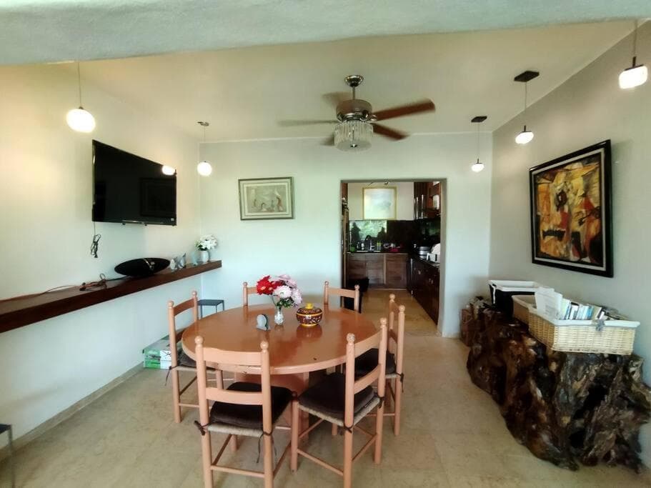 Ixtapa frente al mar, que cuenta con vistas al mar, ofrece alojamiento con piscina al aire libre, jardín y salón de uso común a unos 17 min a pie de Playa Don Juan. Este alojamiento frente a la playa ofrece ping pong, parking privado gratis, wifi gratis y acceso a una terraza. Esta casa o chalet cuenta con 3 dormitorios, cocina con nevera y lavavajillas, TV de pantalla plana, zona de estar y 3 baños con ducha. Hay toallas y ropa de cama en la casa o chalet. La casa o chalet ofrece bañera de hidromasaje. En Ixtapa frente al mar se puede usar la zona de juegos infantil. El aeropuerto (Aeropuerto internacional Ixtapa-Zihuatanejo) está a 24 km.